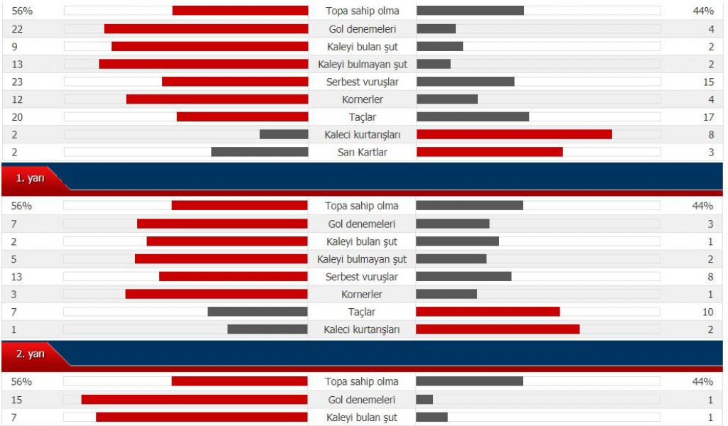 İşte karşılaşmanın istatistikleri